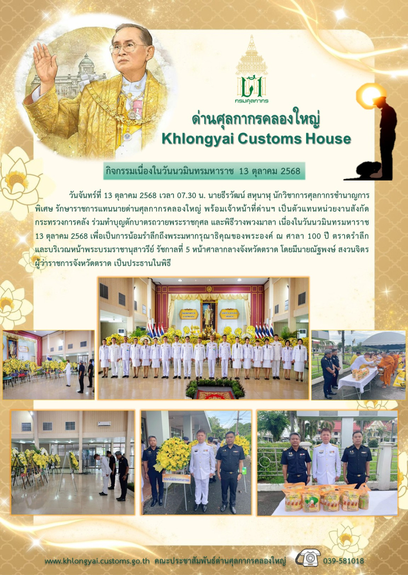 ด่านศุลกากรคลองใหญ่ ร่วมกิจกรรมเนื่องในวันนวมินทรมหาราช 13 ตุลาคม 2568