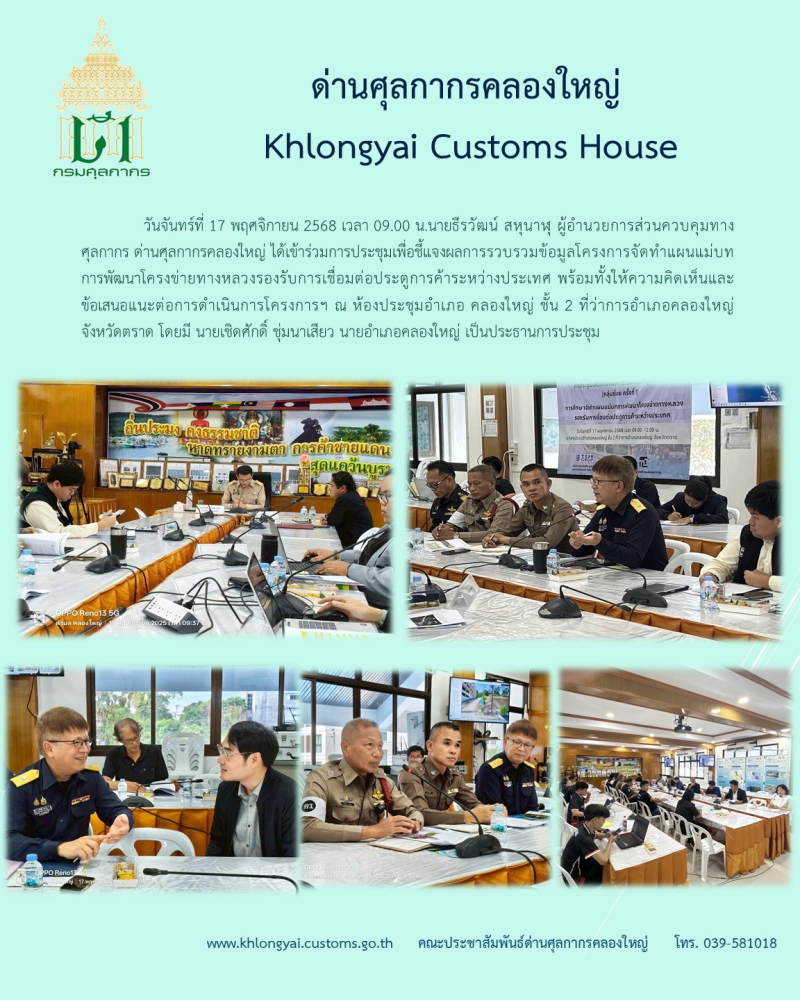 สอบถามข้อมูลเพิ่มเติมได้ที่ : ด่านศุลกากรคลองใหญ่