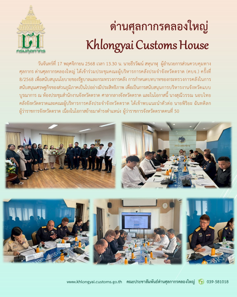 ดคญ. เข้าร่วมประชุมคณะผู้บริหารการคลังประจำจังหวัดตราด (คบจ.) ครั้งที่ 8/2568
