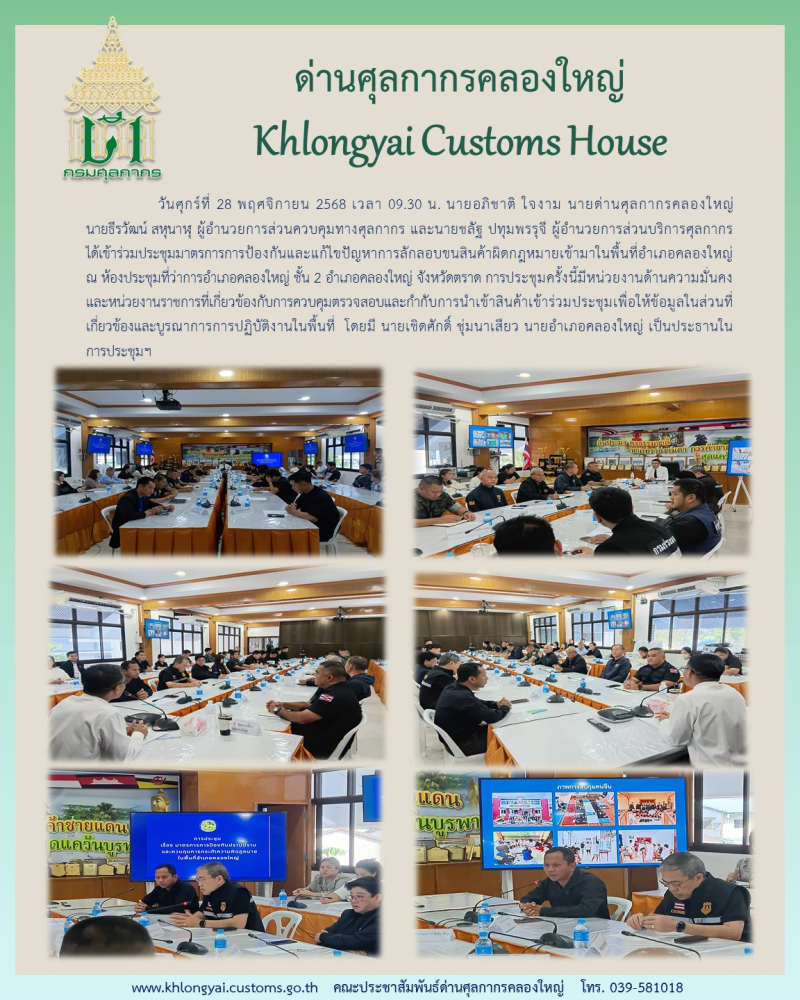 ด่านฯ คลองใหญ่ เข้าร่วมประชุมมาตรการการป้องกันและแก้ไขปัญหาการลักลอบขนสินค้าผิดกฎหมาย