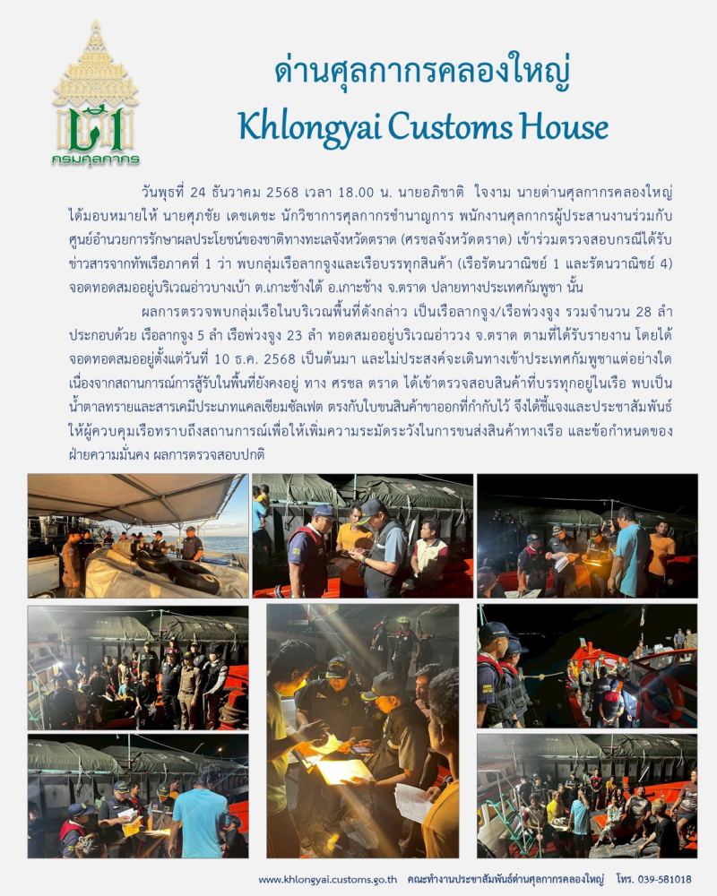 สอบถามข้อมูลเพิ่มเติมได้ที่ : ด่านศุลกากรคลองใหญ่