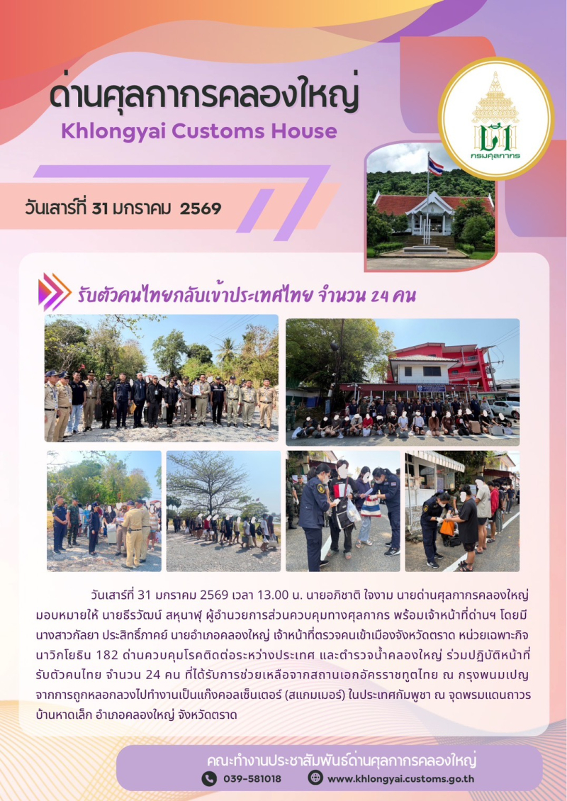 ด่านฯ คลองใหญ่ ร่วมปฏิบัติหน้าที่รับตัวคนไทยที่ได้รับการช่วยเหลือจากสถานเอกอัครราชทูตไทย ณ กรุงพนมเปญ
