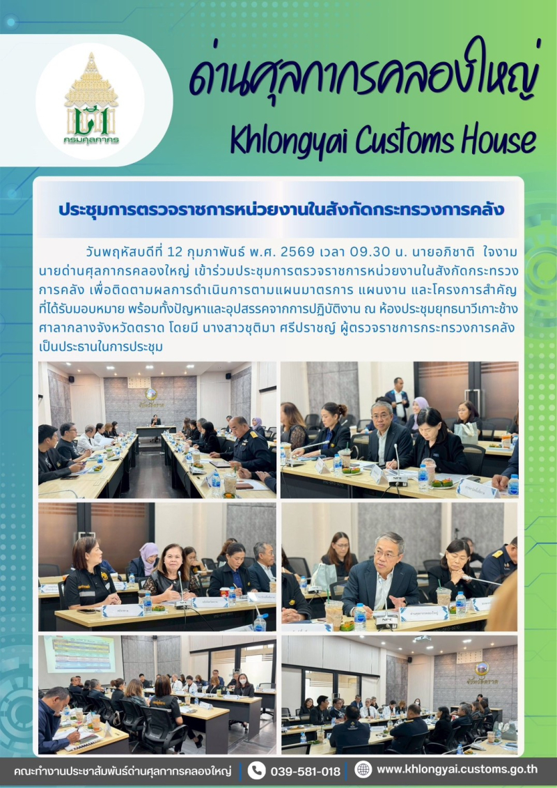 ด่านฯ คลองใหญ่ เข้าร่วมประชุมตรวจราชการหน่วยงานในสังกัดกระทรวงการคลัง