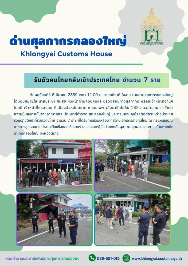 ด่านฯ คลองใหญ่ ร่วมปฏิบัติหน้าที่รับตัวคนไทยที่ได้รับการช่วยเหลือจากสถานเอกอัครราชทูตไทย ณ กรุงพนมเปญ